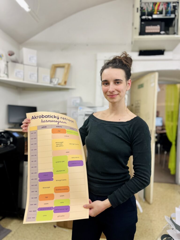 Retreat byl super! Vyzkoušela jsem si spoustu nových technik a zlepšila se v různých prvcích. Program byl pestrý a vyvážený - od jógy přes stojky a gymnastiku až po lekce na šálách.
