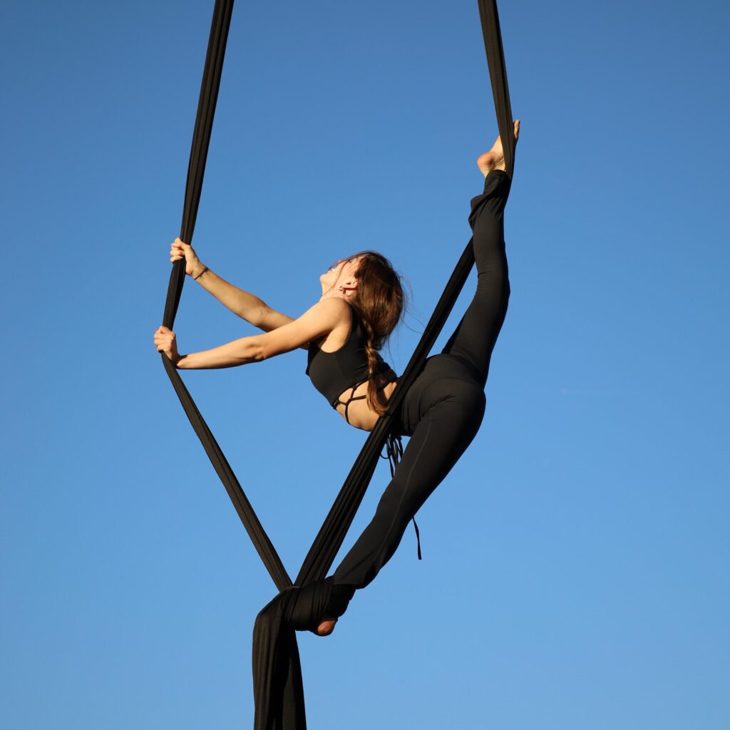 - Závesná akrobacie: Aerial silks a aerial hoop