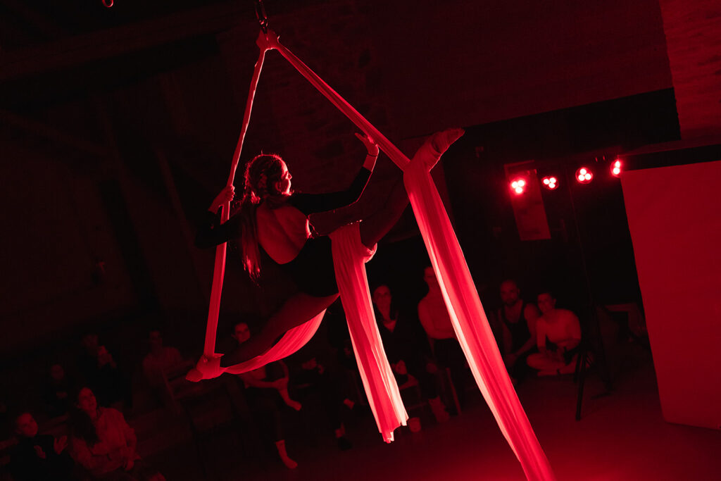 - Závesná akrobacie: Aerial silks a aerial hoop
